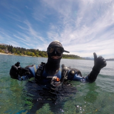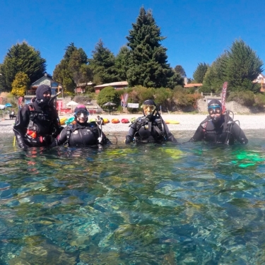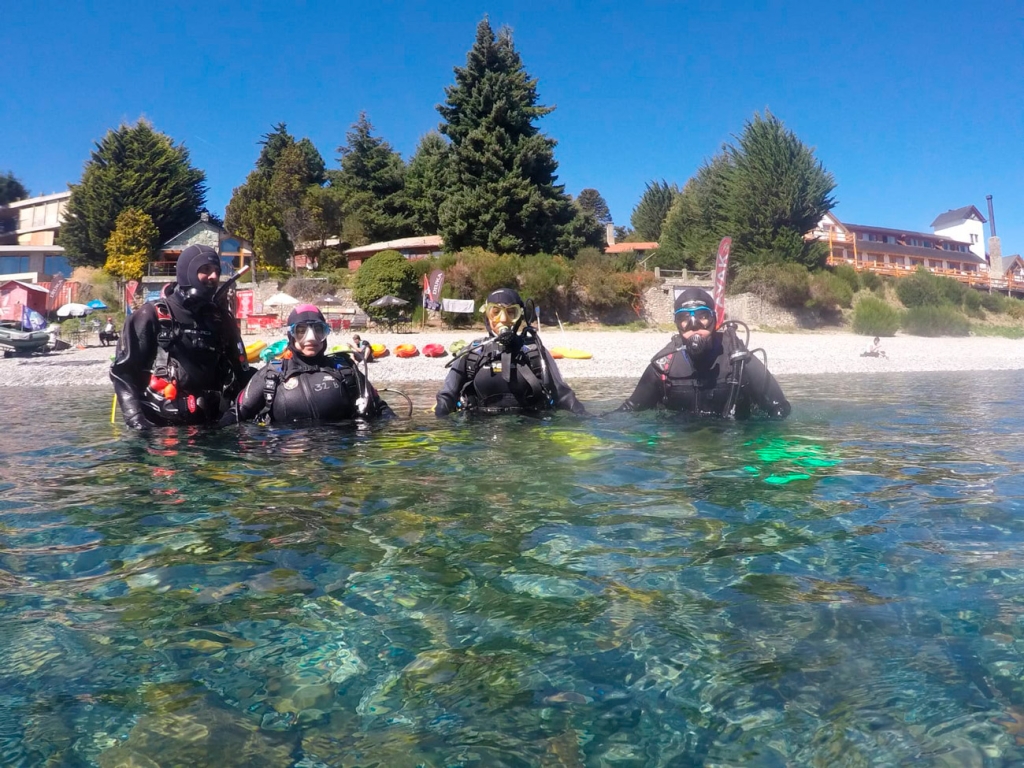 A pocos metros, en la orilla del lago, se realizará una adaptación en aguas poco profundas, siempre con un instructor por participante. Una vez que el cuerpo se relaja y la respiración fluye, comienza la inmersión: un suave recorrido por las aguas cristalinas del Nahuel Huapi, donde la sensación de ingravidez y silencio abre un mundo completamente nuevo. El tiempo de buceo lo regula cada participante, con un promedio de unos 40 minutos dentro del agua.
