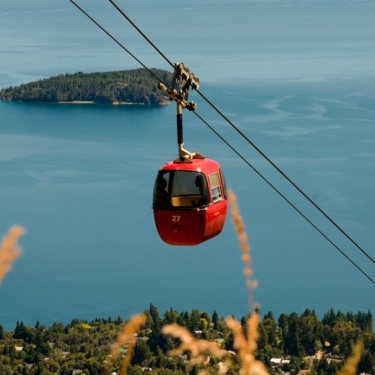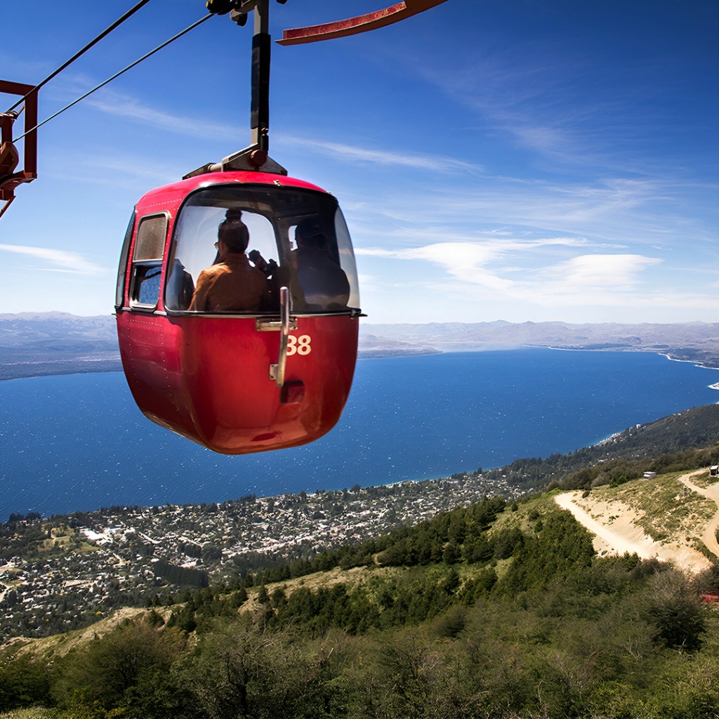 Desde un punto de encuentro pactado en Bariloche, serán trasladados a la base del cerro para ascender en el moderno Teleférico con capacidad hasta 4 pasajeros por góndola mientras recorren 2 km sobre el bosque andino hasta alcanzar los 1.405 msnm. Durante el ascenso, las ventanas se abren al Lago Nahuel Huapi, la ciudad y las montañas que rodean el Parque Nacional.
