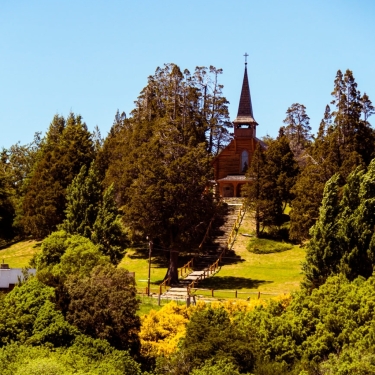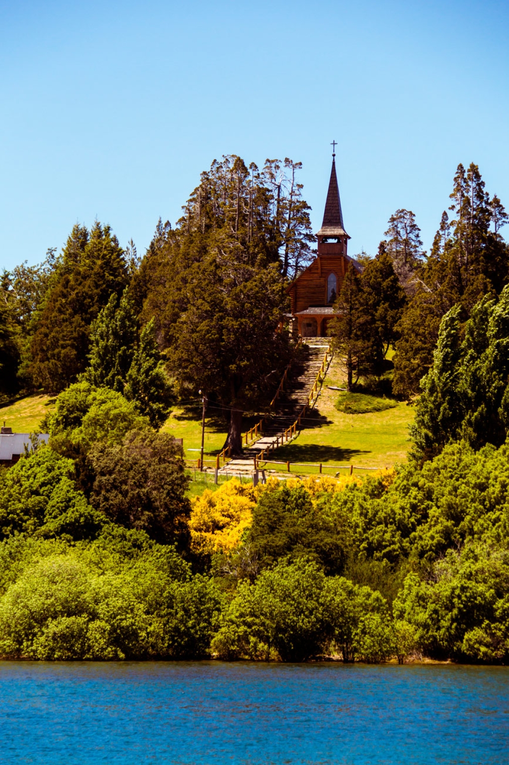 Más adelante, la excursión continúa hacia la Península Llao Llao, donde se alzan el emblemático Hotel Llao Llao y la encantadora Capilla San Eduardo, enclavados en un marco natural espectacular. Muy cerca de allí, en Puerto Pañuelo, es posible divisar el punto de partida de las excursiones lacustres hacia la Isla Victoria o el Bosque de Arrayanes.