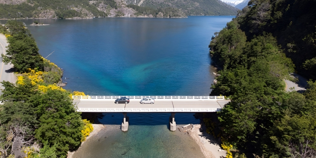 El trayecto sigue por Villa Tacul y frente al sereno Lago Escondido para luego, al cruzar el Puente Angostura, vivir la particularidad de la confluencia entre el Lago Nahuel Huapi y el Lago Perito Moreno, separados por apenas unos metros y unidos por una belleza majestuosa.