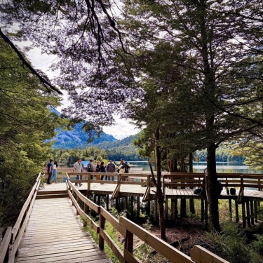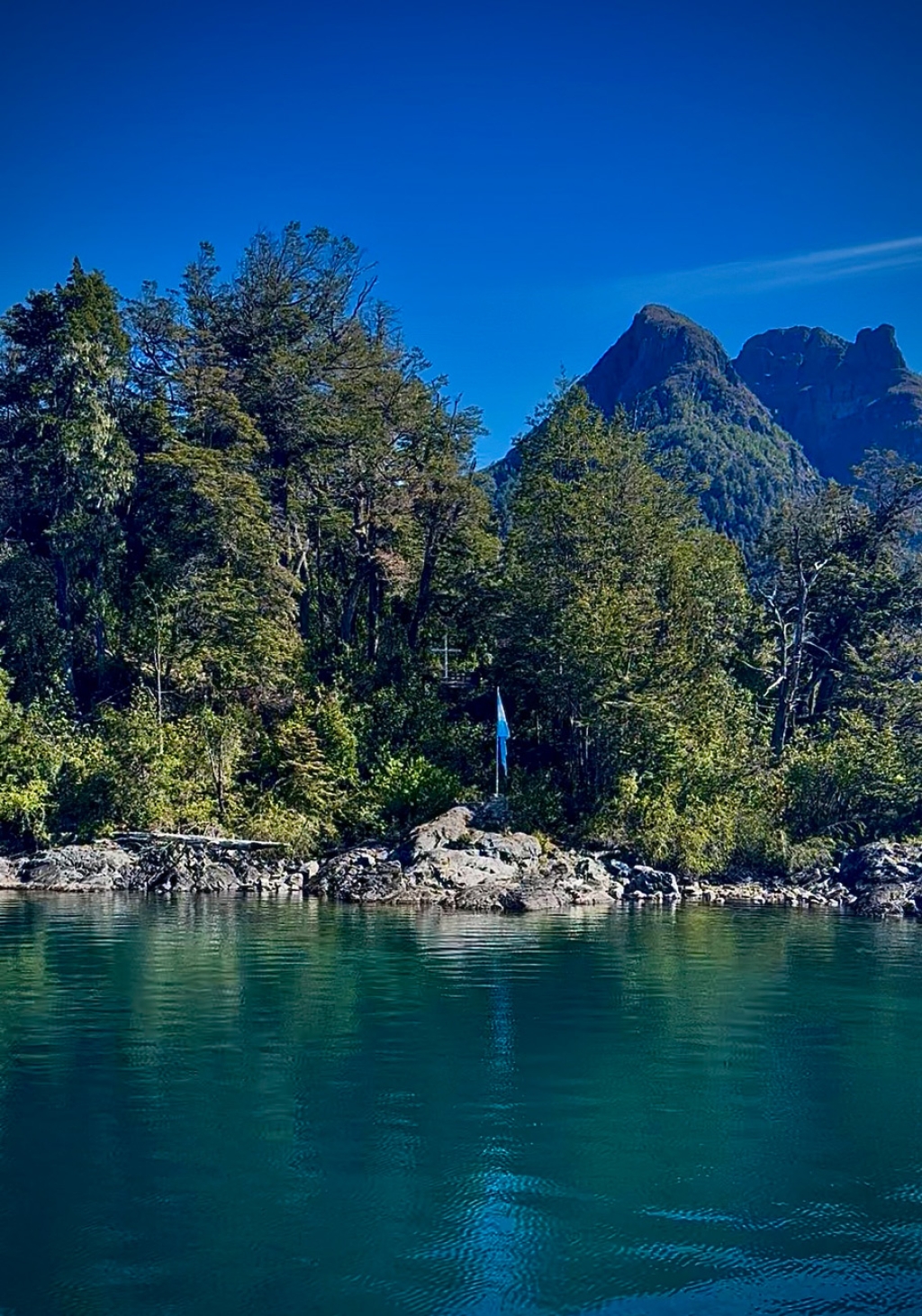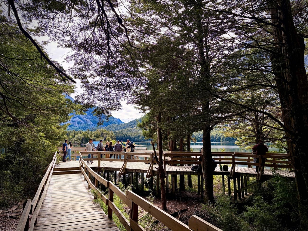 La excursión inicia a bordo de una moderna embarcación que navega por las aguas azul profundo del Lago Nahuel Huapi, rodeado de cerros cubiertos de bosques nativos. En el trayecto se bordea la Isla Centinela, donde descansan los restos del Perito Francisco Pascasio Moreno, figura clave en la creación de las áreas protegidas argentinas. Este punto marca el ingreso a una zona de vegetación cada vez más densa y húmeda, preludio del microclima que caracteriza al Brazo Blest.