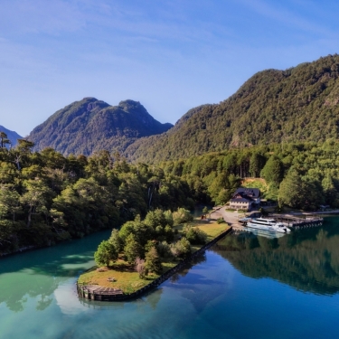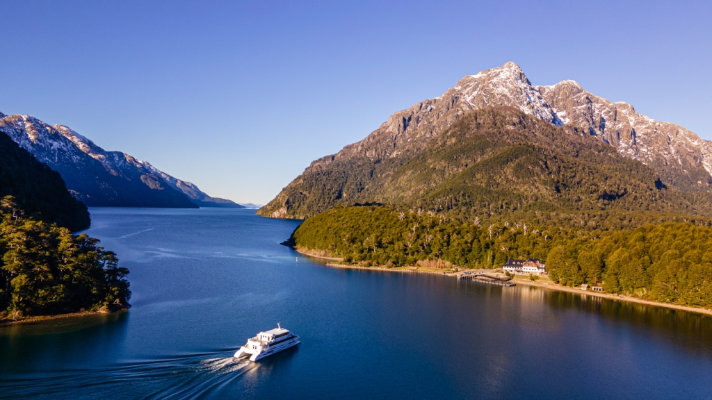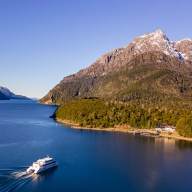 La navegación continúa hacia el mítico Puerto Blest, uno de los lugares más húmedos y verdes de toda la Patagonia donde se encuentra enclavado el histórico Hotel Blest. Allí, el silencio del entorno contrasta con la exuberancia de la vegetación, ofreciendo un espacio ideal para descansar, explorar o simplemente contemplar los colores que tiñen la bahía. Desde este punto es posible visitar de manera opcional el Lago Frías que es un pequeño espejo de agua de tono esmeralda intenso, teñido por los sedimentos glaciales que descienden del Cerro Tronador, siendo éste la conexión terrestre entre Argentina y Chile.