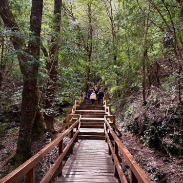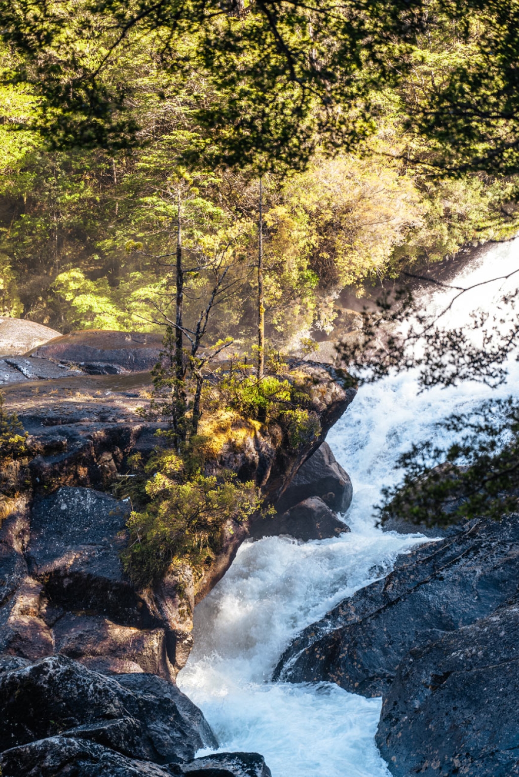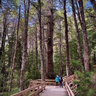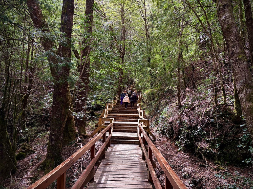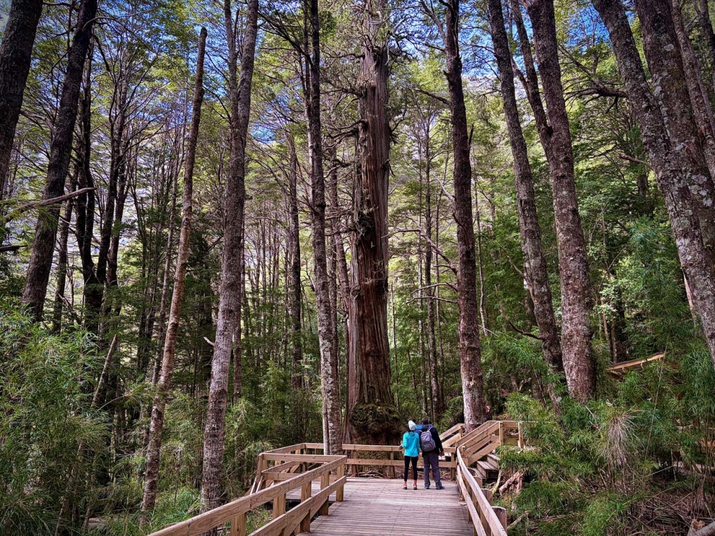 Finalizada la visita a Puerto Blest, el barco continúa su navegación hasta la base de la Cascada de los Cántaros, donde inicia un sendero de pasarelas y escalinatas que se abre paso en medio de un tupido bosque patagónico. A medida que se asciende, aparecen miradores naturales que permiten observar los distintos saltos de agua del Lago Cántaros. El recorrido culmina en la orilla misma de ese lago, custodiado por un alerce milenario que ha sido testigo del devenir del paisaje durante más de quince siglos.